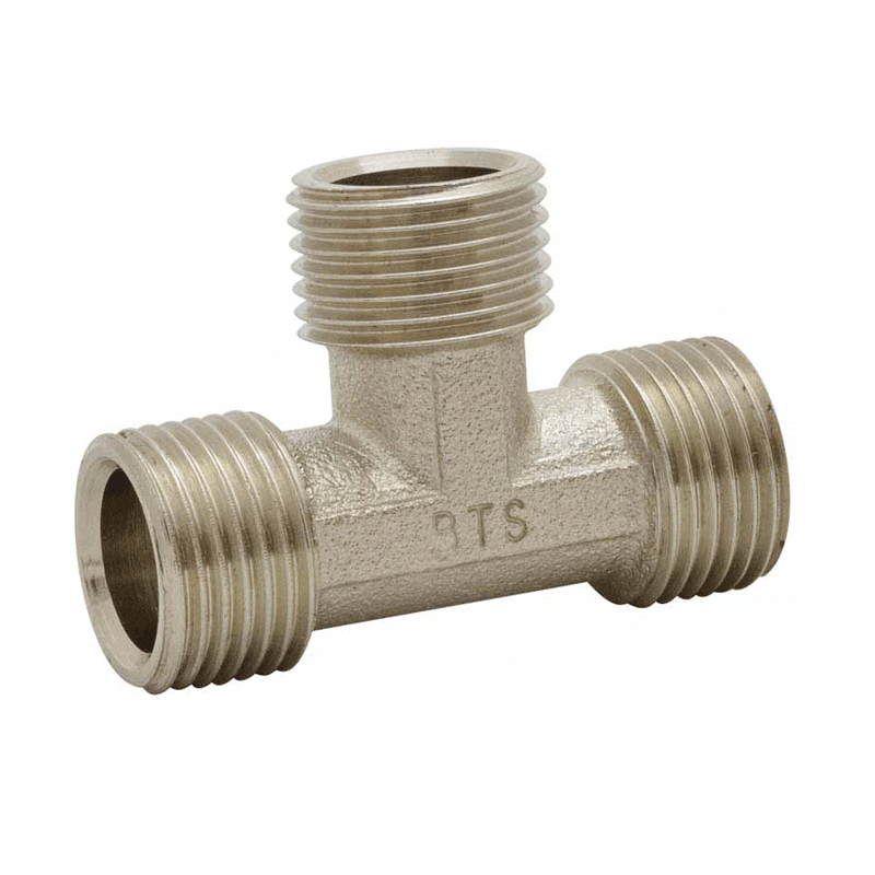 • سه خروجی رزوه‌دار (روپیچ): این اتصال از سه سمت دارای رزوه‌های خارجی (روپیچ) است که به لوله‌ها یا اتصالات دیگر متصل می‌شود و امکان توزیع جریان سیال به چند مسیر را فراهم می‌کند.